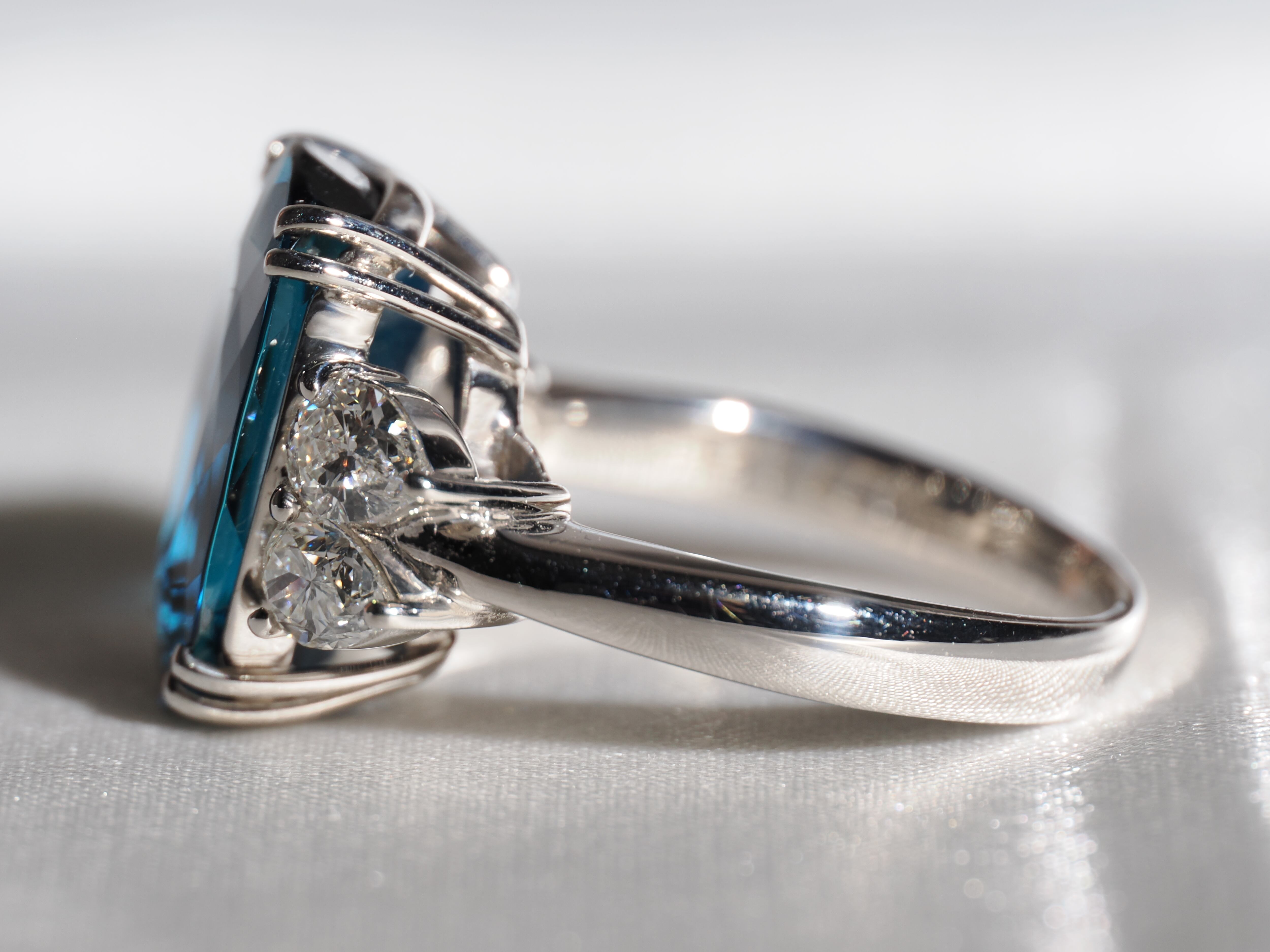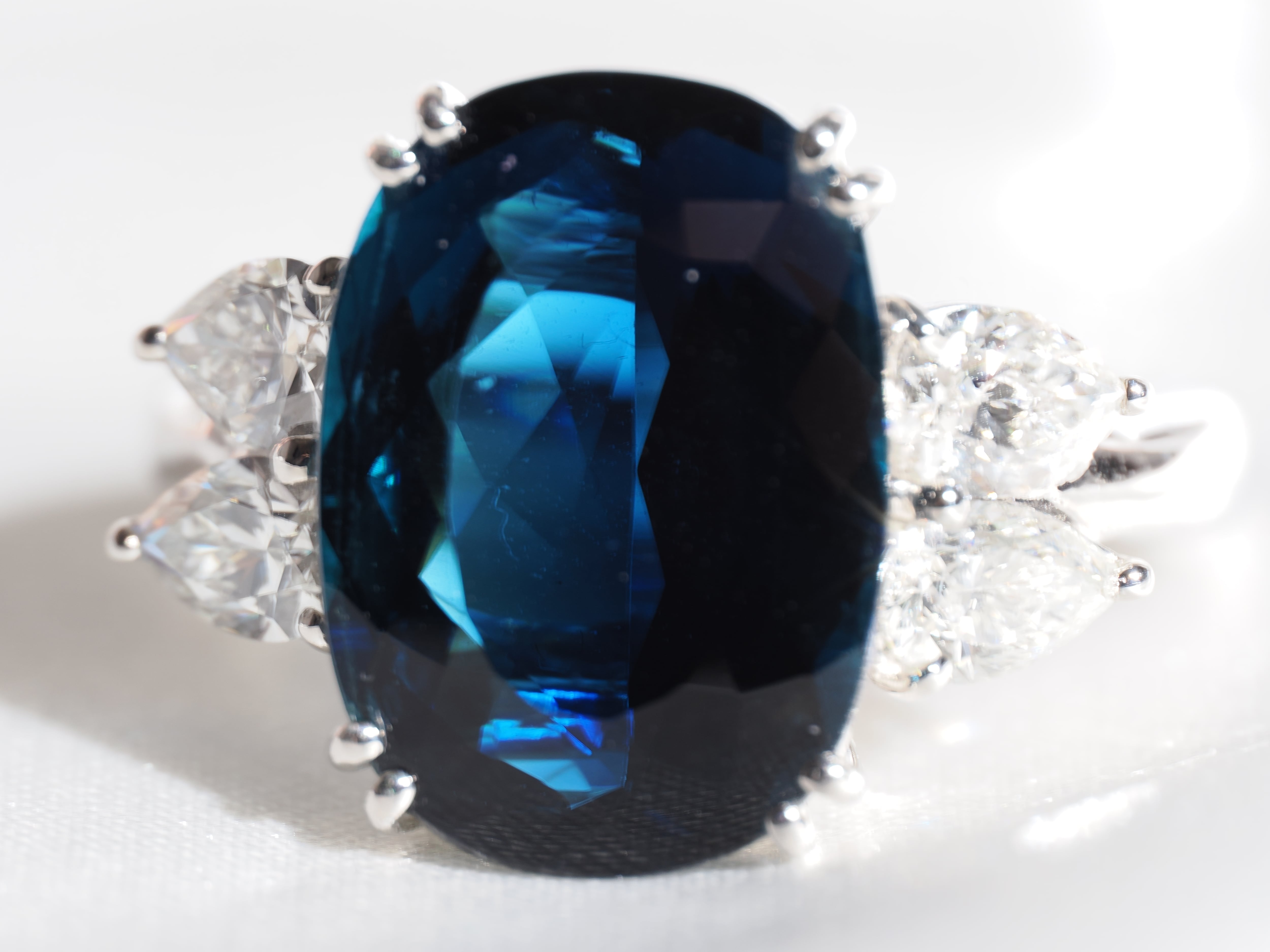 ブルーサファイアや、ブルーグリーンの特徴を持つパライバトルマリンなどとも異なる、なんとも不思議な魅力あるブルーです。